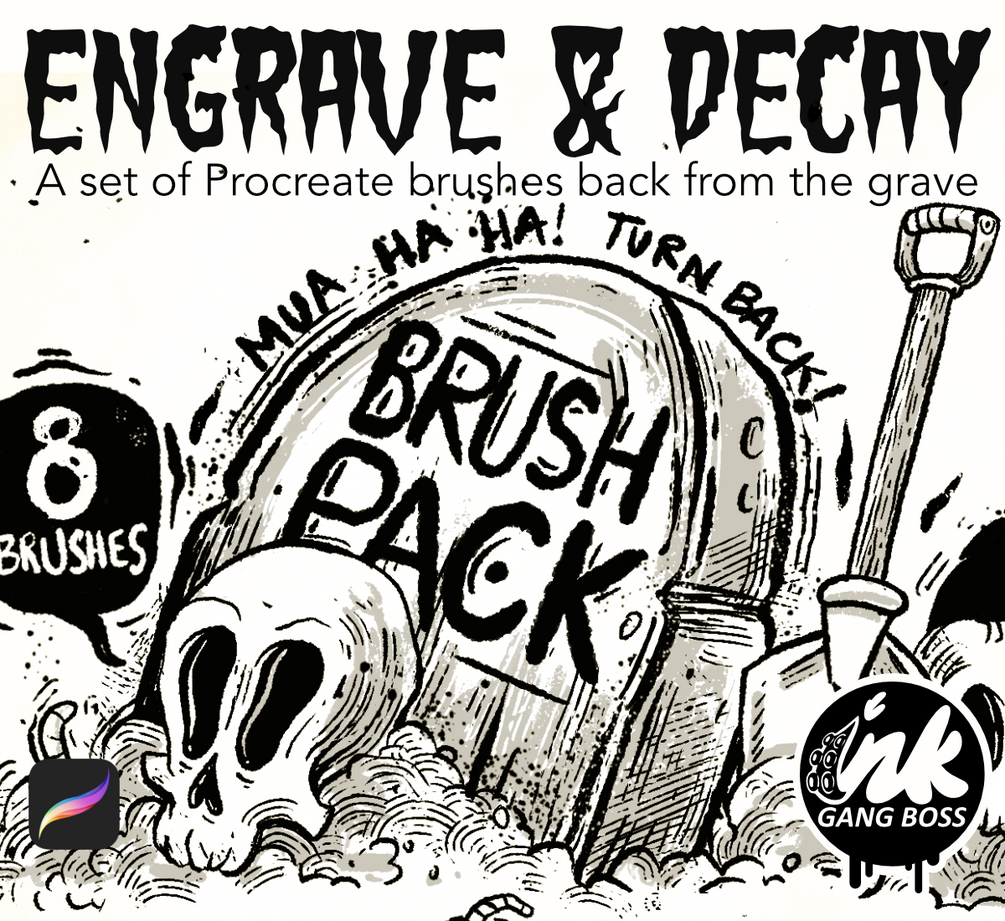 Unleash the dark side of your creativity with our vintage engraving, ink, and paint brushes for Procreate. These brushes are like a portal to an abandoned art studio. They'll add a touch of gritty realism, decay, crusty character, and spooky style to your digital art projects. Be warned, these brushes are not for the faint of heart. Only the bravest artists should delve into this crusty set of . Proceed with caution... if you dare.